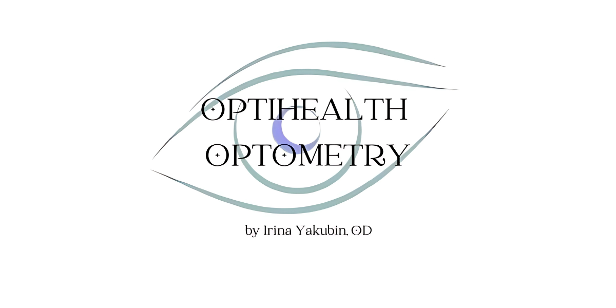 OptiHealth Optometry logo by Dr. Irina Yakubin, offering personalized, innovative eye care with a focus on education and empowerment.